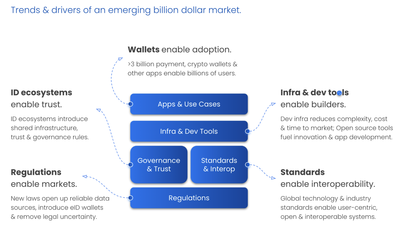 Today, we see international organizations (e.g. EU, GLEIF), governments around the globe (MENA, APAC, Americas), businesses across industries and major blockchains develop a rich variety of identity ecosystems to enable use cases across applications, sectors and borders.